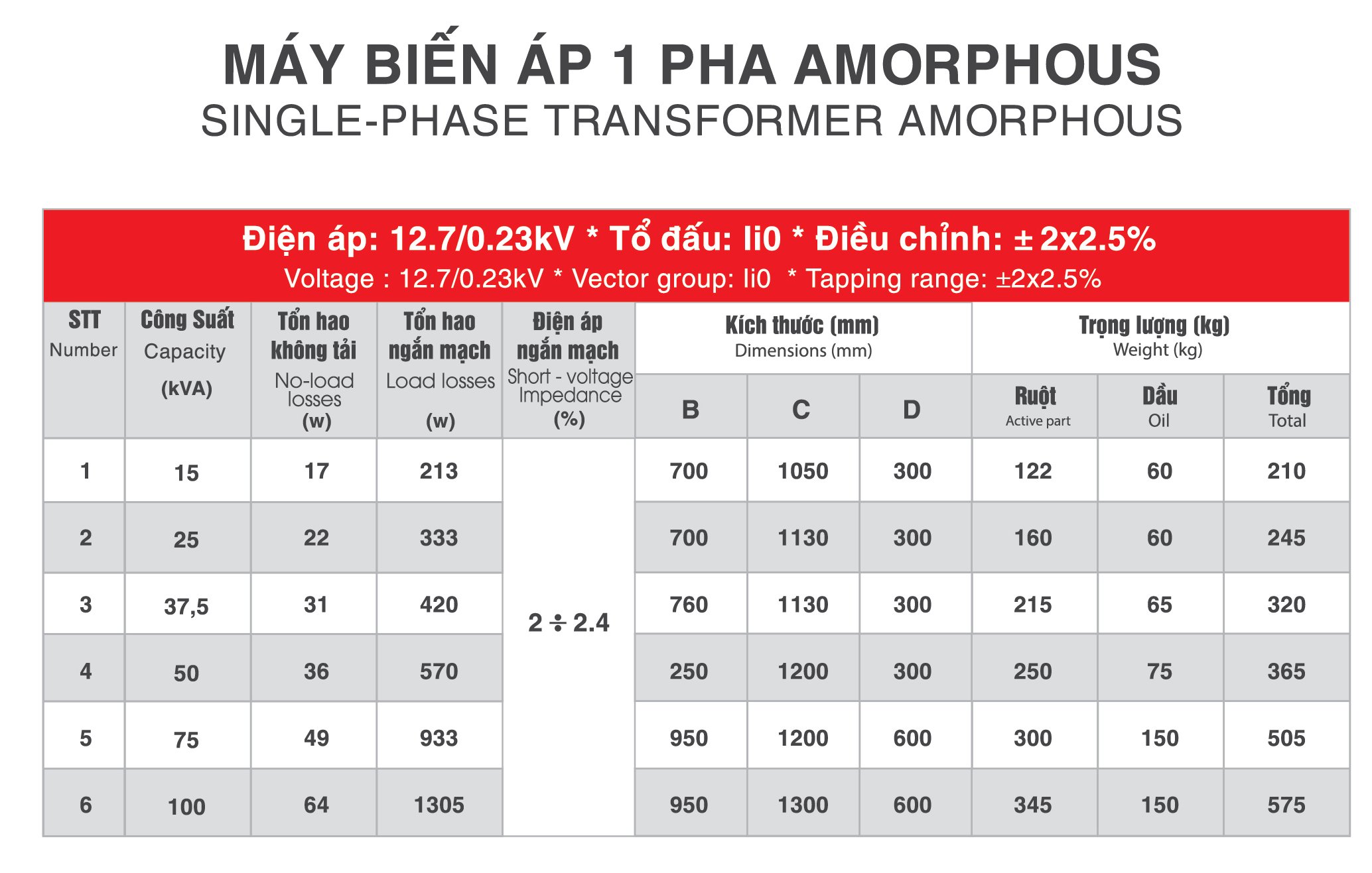 Máy biến áp 1 pha amorphous – điện áp 12.7/0.23kv